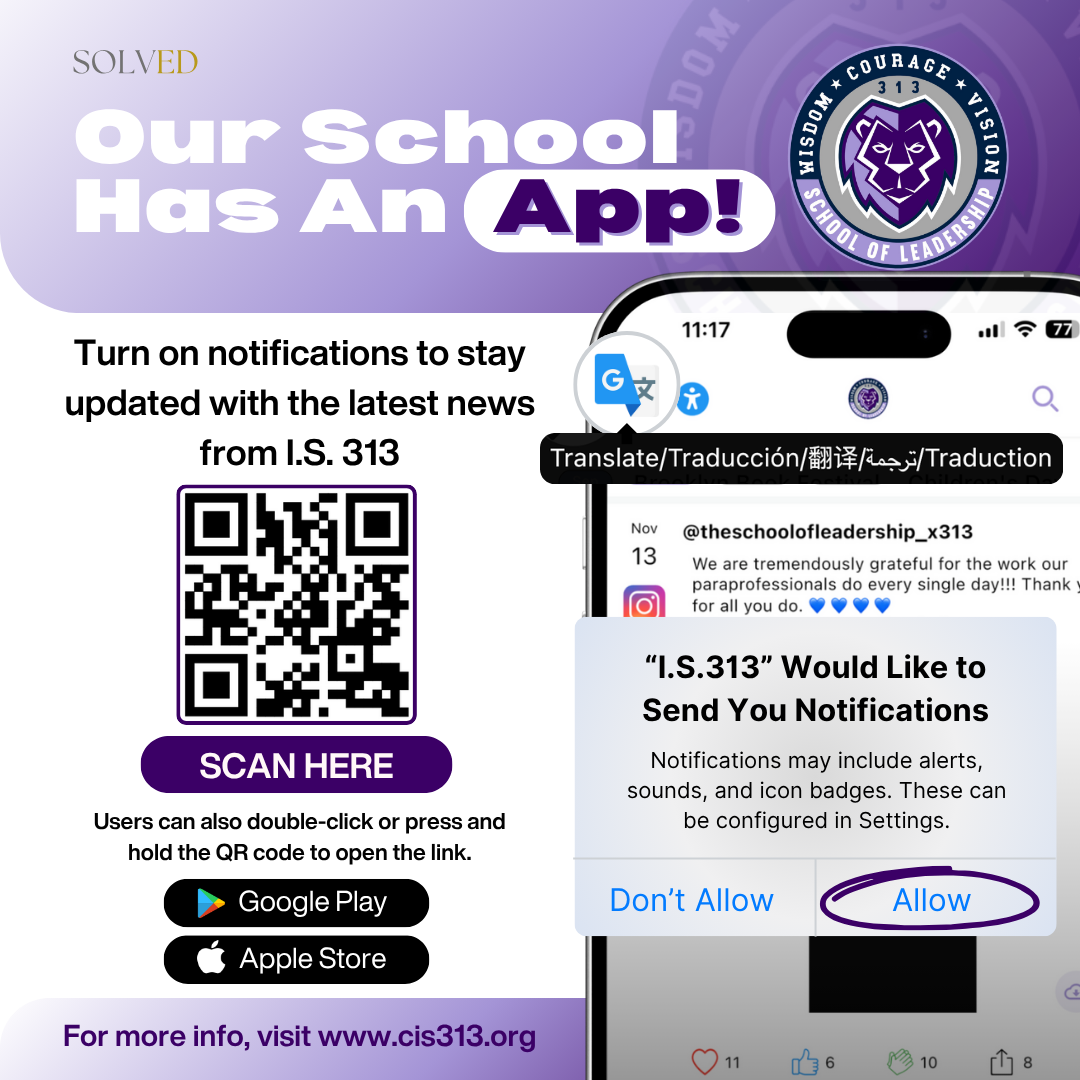 Our mission at C.I.S 313 is to foster a joyful, experiential, and academically rigorous learning environment. We challenge and excite our students through collaborative, technology-enhanced learning experiences that affirm their identities and stories. Utilizing New York City as a living text, we provide real-world learning opportunities that deepen understanding and engagement. With research-based curriculums, we develop empathy, strengthen relationships, and nurture curiosity, critical thinking, and resilience, preparing our students and their families to thrive in an ever-changing world.